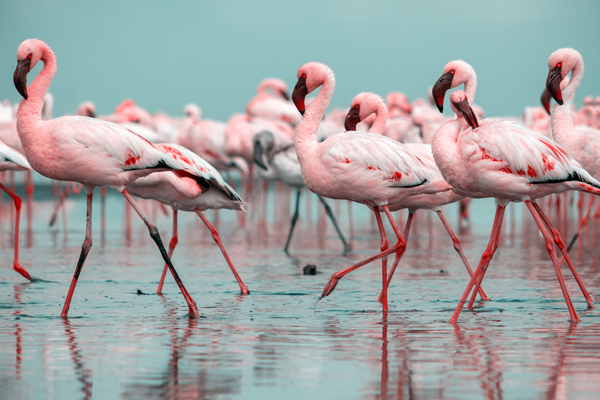 Birdlife in Africa is equally astonishing, with over 2,300 species. Majestic raptors like the African Fish Eagle dominate the skies, while vibrant Bee-Eaters, Sunbirds, and Turacos brighten woodlands and savannahs. The continent’s wetlands host immense flocks of Pink Flamingos, and migrating Storks and Pelicans create seasonal spectacles.